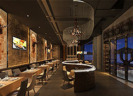 鐵架與鋼絲的融合在廣州餐飲裝修中并不少見(jiàn),這也創(chuàng )造了層次分明的餐飲環(huán)境。本…